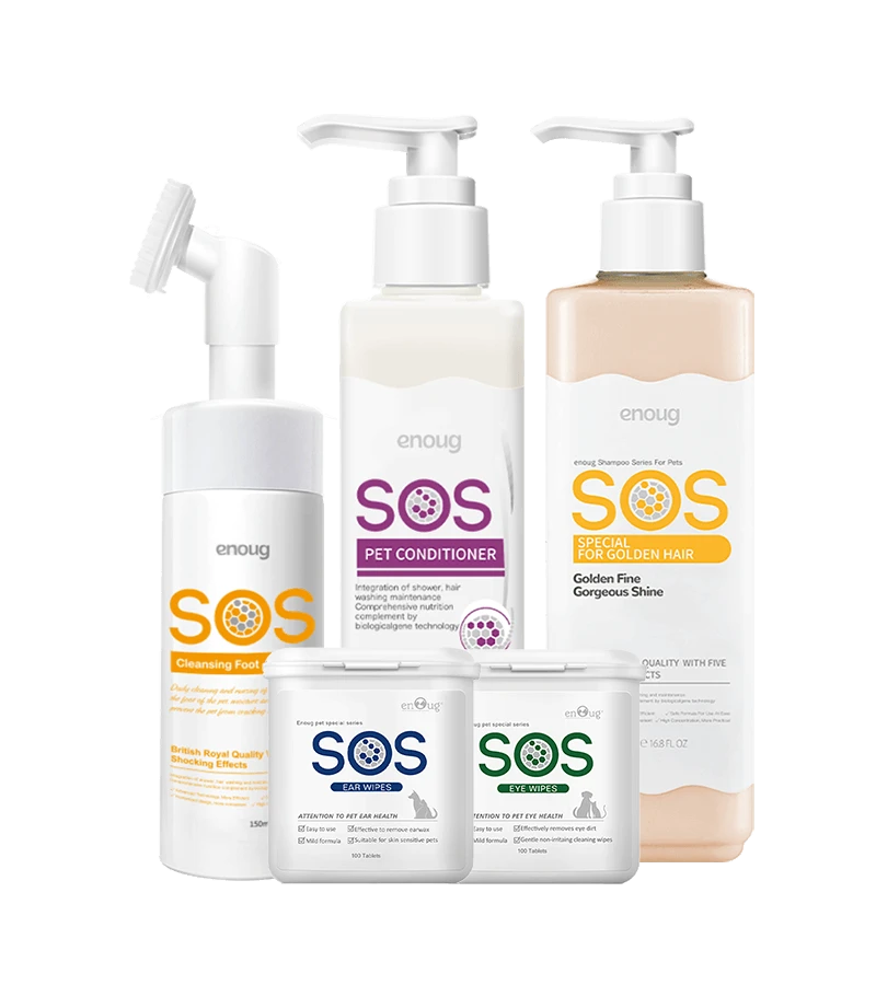 SOS Shampoo “Golden Coat”: Specially formulated for dogs with golden fur, this shampoo deeply cleanses and hydrates the coat, enhancing its natural shine and warm color.