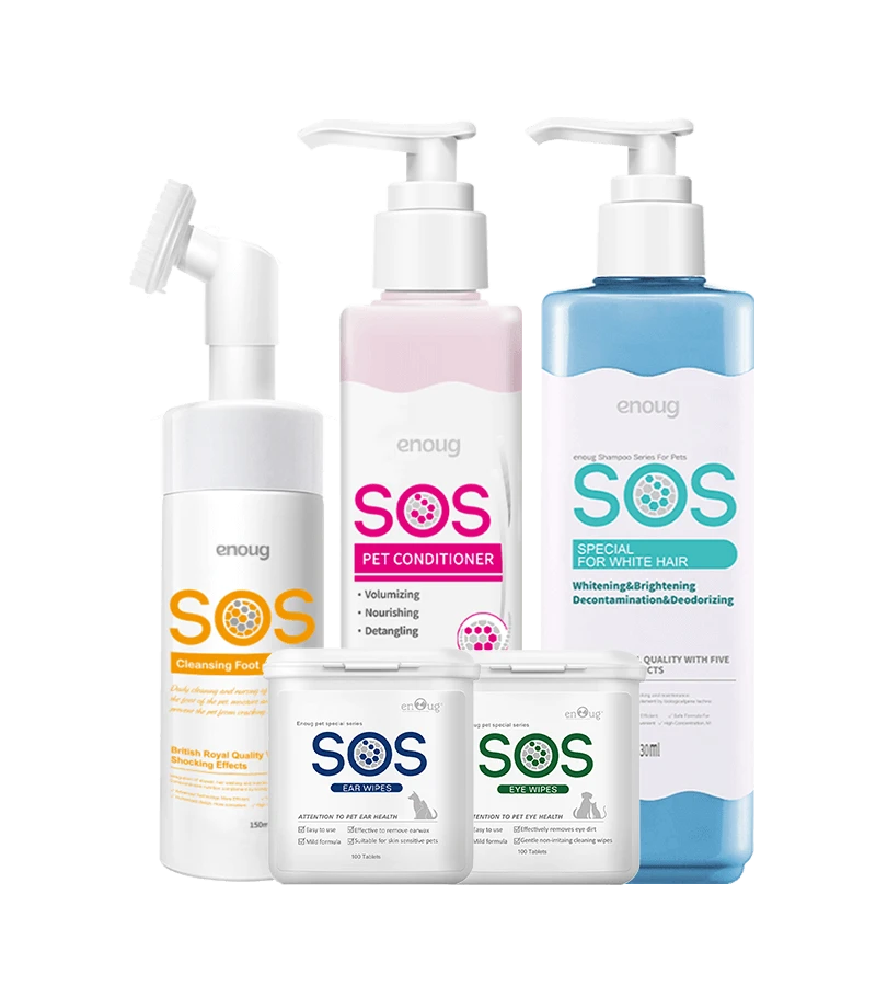 SOS Shampoo “White Coat”: Specially formulated for dogs with white fur, this shampoo effectively removes dirt and yellowish stains, leaving the coat shiny and brilliantly white.