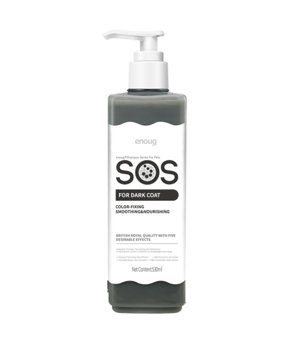 The SOS Shampoo for Dark Coat is the ideal choice for dogs with dark fur that often face challenges like fading color and loss of shine.