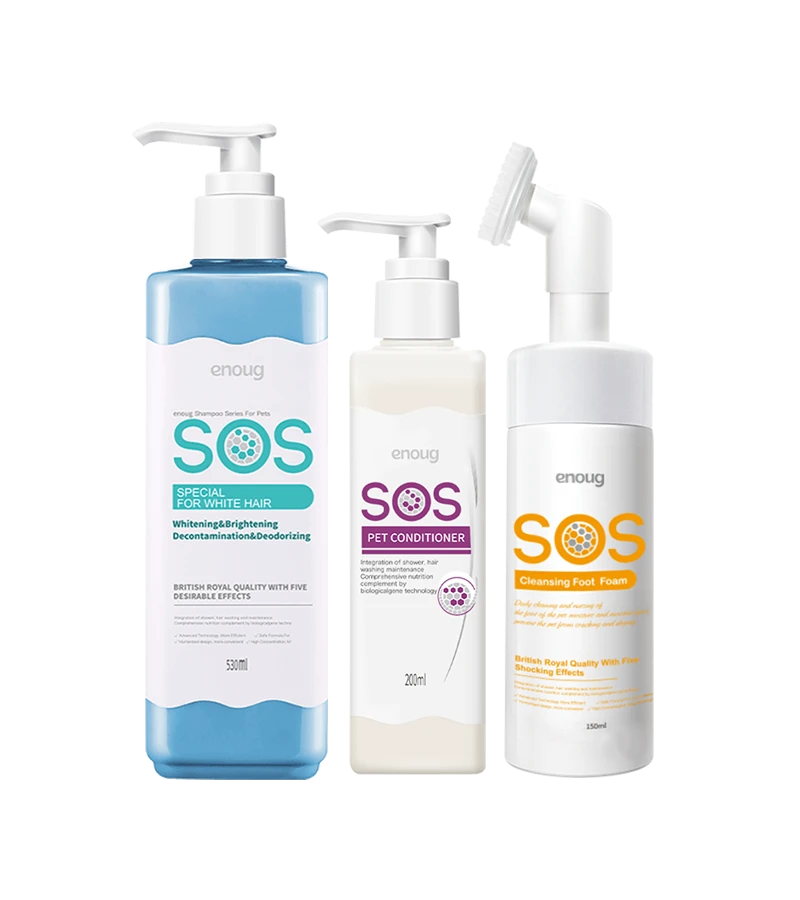 SOS Šampon „Bela dlaka“: Specijalno formulisan za pse sa belom dlakom, ovaj šampon efikasno uklanja nečistoće i žućkaste mrlje, ostavljajući dlaku sjajnom i blistavo belom.