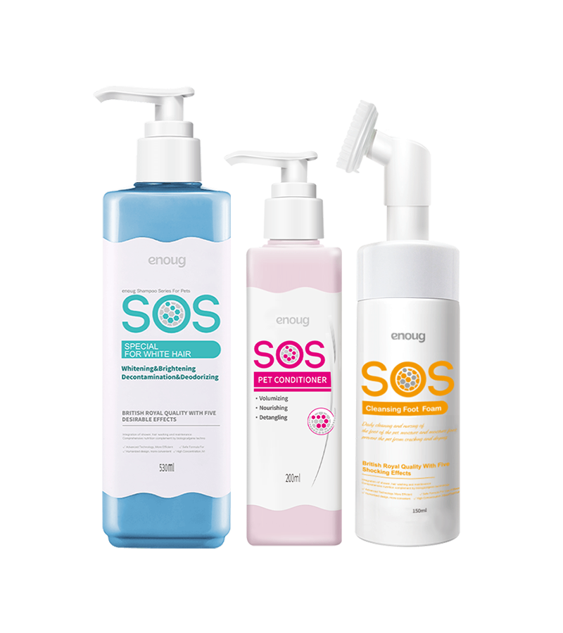 SOS Šampon „Bela dlaka“: Specijalno formulisan za pse sa belom dlakom, ovaj šampon efikasno uklanja nečistoće i žućkaste mrlje, ostavljajući dlaku sjajnom i blistavo belom.