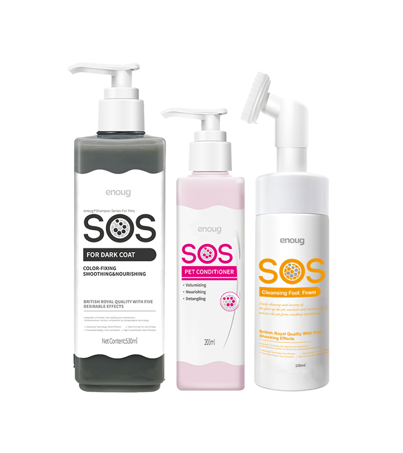 SOS Šampon „Tamna dlaka“: Specijalno formulisan za pse sa tamnom dlakom, ovaj šampon dubinski čisti i hidrira dlaku, ističući njen prirodni sjaj i intenzitet boje.