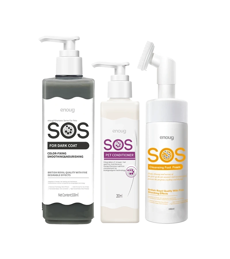 SOS Šampon „Tamna dlaka“: Specijalno formulisan za pse sa tamnom dlakom, ovaj šampon dubinski čisti i hidrira dlaku, ističući njen prirodni sjaj i intenzitet boje.